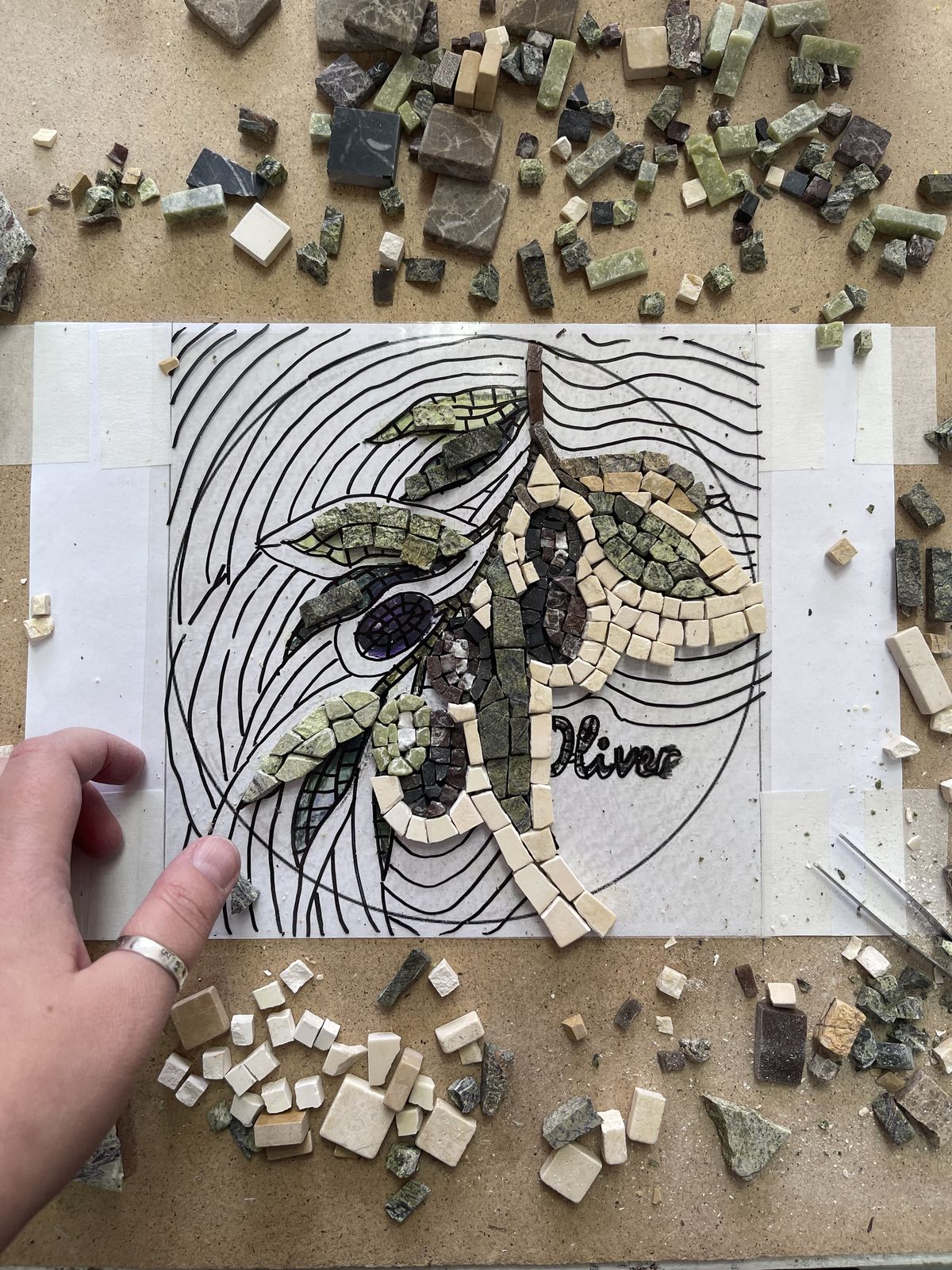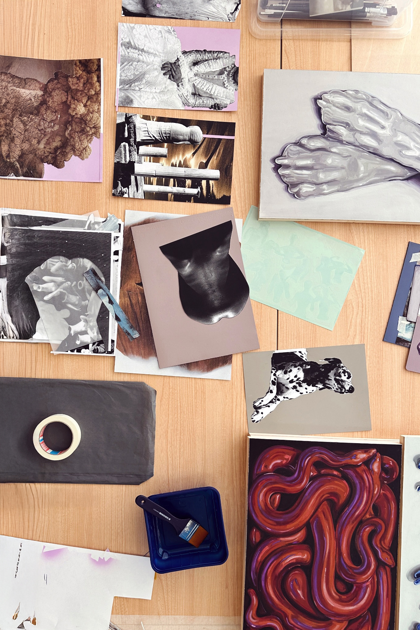 El collage se compone de piezas superpuestas de distintos imágenes. El proceso consiste en seleccionar, cortar y combinar los elementos, descubriéndolos poco a poco frente a la cámara.